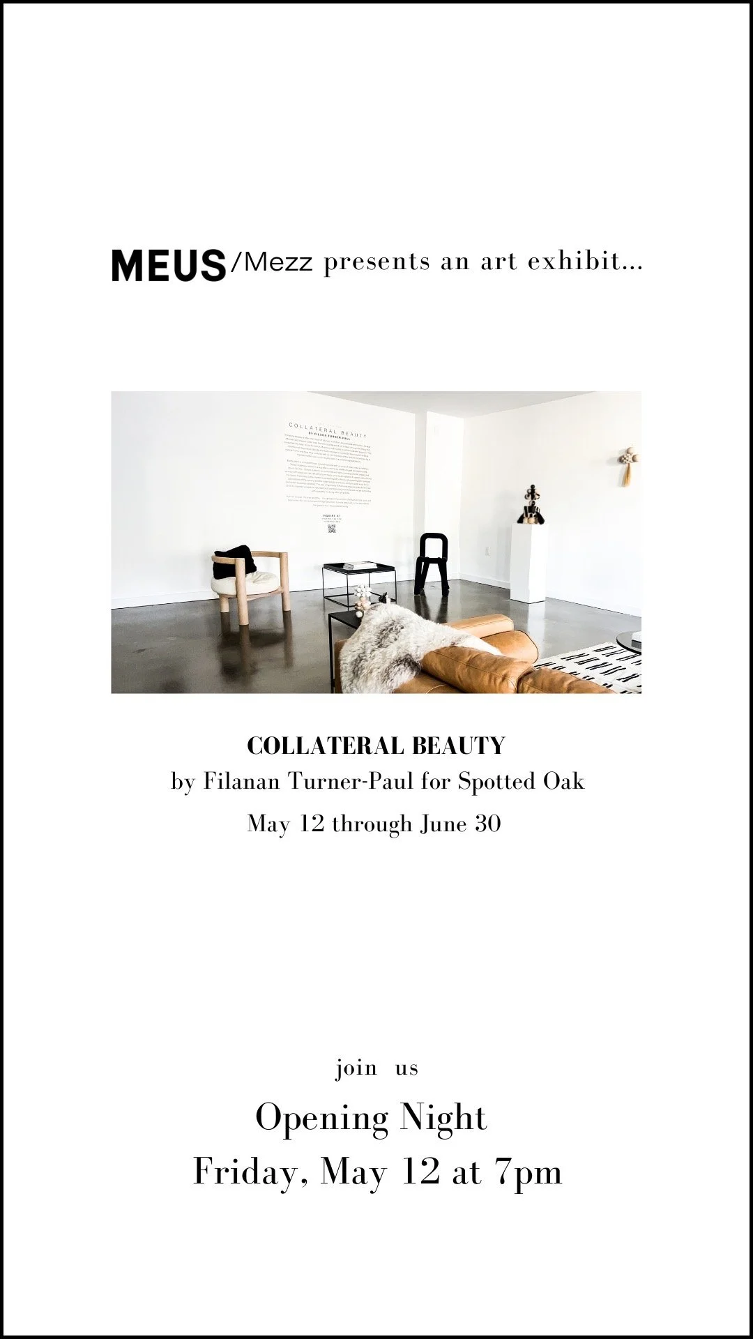 May 12 to Jun 30 MEUS Fri, May 12, 2023 7:00 PM Fri, Jun 30, 2023 10:00 PM MUES (map) Google Calendar ICS MEUS_guest artist Filana Turner View Event →